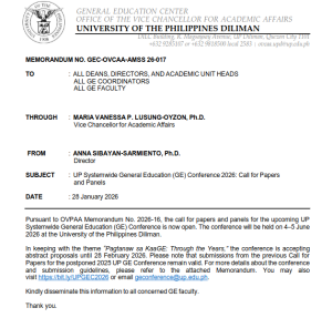 Memorandum No. OILD-CPA-25-15: Call for Applications for the 2nd Semester AY 2025-2026 UPD LIPAD- ARAL: International Student Exchange Program (Spring 2026)