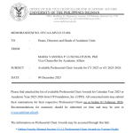 Memorandum No. OVCAA-MVLO 25-086: Available Professorial Chair Awards for CY 2025 or AY 2025-2026 Posted on December 9, 2025