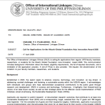 Memorandum No. OVCAA-MVLO 26-029: Applications for the UP Diliman Centennial Professorial Chairs and Faculty Grants (1 January 2026 to 31 December 2026 cycle) Posted on April 15, 2026