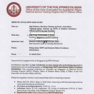 Memorandum No. OILD-CPA 24-14: 2024 UPD STUDY ABROAD FAIR— LAYAG: Humayo at Matuto sa Ibang Ibayo (Set Out and Learn Overseas) Posted on February 22, 2024